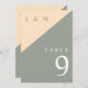 Dessa små mängder grönt och grädde, elegant bröllop-bordsnummer kan vara personlig med era uppgifter i modern typografi. Designad av Thisisnotme©