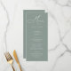 Elegant och modern grönt med vit text, minimalistisk platt meny. Fullständig meny för anpassadet för bröllop eller händelsen.