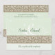 En brunt prydnadsfrys mot bakgrund av färgaden av grönt fungerar som det viktigaste grafiska inslagen för dessa eleganter. Använda som en kontaktpunkt i dina bröllopsinbjudningar, spara-till-datum eller för formella meddelanden och/eller inbjudan. Anpassa med din egen namn och information. Matchningskort, porto och tillgängliga tjänster. Se min affär för andra alternativ i färg.