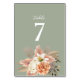 Sage Grönt Peach Blommigt Bröllop Bordsnummer