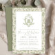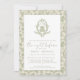 Samla vänner och familj med den här Perfekten för grönt Pear Rehearsal-middagsinbjudan. Den här utformningen är ett snyggt sätt att fira paret på kvällen före bröllop. Den har en päroninspirerad vapensköld och en Fransk-inspirerad damm.