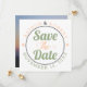 Sage-grönt, persiko-typografi på baksidan spara datumet