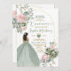 Sage Grönt Princess Dress Rosa Blommigt Quiñceaner Inbjudningar