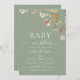 Sage Grönt QR Code Wildblomma Baby i Bloom Inbjudningar