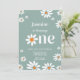 Sage Grönt Retro Groovy Daisy Blommigt 1:a födelse Inbjudningar