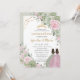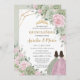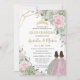 Sage Grönt Rosa Blommigt Guld Quinceañera-Twilling Inbjudningar