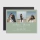 Sage Grönt Script 3 Photo Bröllop spara datum Magnetisk Inbjudningskort