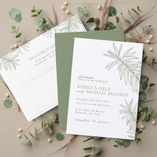Sage Green Simple Botanical Leaves Wedding Designad av Amour Paperie