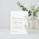 Sage Grönt Simple Hand plockade Botanical Bröllop Tack-kort Den här eleganten tackar du för att du har ett enkelt handritat botaniskt format i en lugnande grönt, perfekt för tacksamhet efter din speciella dag. Den minimalistiska estetiken tillför en aning sofistikering och skapar den lämplig för alla bröllop-teman. Det här kortet är konstruerat av material av hög kvalitet och ger dig gott om utrymme för ditt hjärtliga budskap, så att du kan se hur du uppskattar det på ett bra sätt. Idealisk för att du skickar till gästerna är det ett charmerande sätt att behålla firande glädje levande.