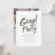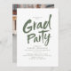 Modern penselskriptutformning Studenten-inbjudan i sidled grönt och vitt, med ett foto i baksidan, enkelt och unikt. Anpassningsbar den med egna foton och gradera party-information.