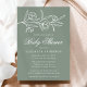 Sage Grönt Sketched Blommigt Baby Shower Inbjudningar