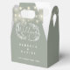 En elegant Sage grönt bröllopsförmånslåda med strängt ljus och handdragen blommigt foliage. Du kan anpassa dig med ditt eget tack till ditt meddelande på motsatt sida. Ett perfekt sätt att tacka gästerna! Designad av Thisisnotme©