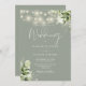 Sage Grönt String Ljus Blommigt Monogram Bröllop Inbjudningar