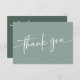 Ett minimalistiskt tack-kort med en stilren design med en jordnära sage grön färg och ett modernt teckensnitt. Detta platta kort har "tack" på framsidan och ett redigerbart tackmeddelande på baksidan. Detta kort är perfekt för att tacka gäster för shower, bröllop eller festgåvor. Kombinera med något från SAM kollektionen.
