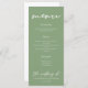 Den här enkla målmenyn för helsidessalen grönt bröllop innehåller ett vitt skript för elegant för en utomhusceremoni i en naturinställning. Minimalistisk typografi på fredlig ljust grönt för en plats utanför träd nära en skog.