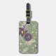 Den här personligen har en bagagetagg med luddar och blommor i vitt på en grönt med lila, plommon och lilac accent blommor - anpassa med sitt monogram och adress på baksidan - med katz_d_zynes | Sök efter "boho+fjäthers" i min butik efter fler mönster/blommigtar/paisley boho stil