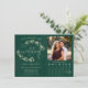 Det här vackra bröllop spara datum-kortet har en framväxande grönt- och sage-färgad med modern manusskrift och en sprit av handmålade vattenfärgade löv, viner, grönområden eller löv. Det finns plats för ditt foto, parets placering i namn & bröllop och en anpassningsbar-kalender där du kan lägga ett hjärta kring din speciella dag. Ett underbart sätt att starta resan i bröllop och låta alla få veta att du ska skriva in din dejt på deras kalendrar! Du kan även hämta det elektroniskt så att du kan skicka det via text eller e-post, eller ta med det på bröllop webbplats.