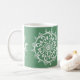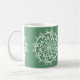 Denna vita mandala sitter på grått-gröntens bakgrund. Färg är naturligt och avslappnande. Del av Payon Mandala-samlingen.