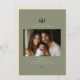 Sage Minimalist Modern Photo jul Card. Den övergripande designen är enkel och elegant, medan det skalade fotot ger ett modernt och roligt. Visas i sage, mörk grönt och grädde, men ALL FÄRG ÄR EDITABLE. Välj färg som kompletterar fotot, inklusive bakgrund (fram + bak), text och utforma inslag för att skapa ditt eget designade kort för anpassningsbar. © Kimbelled, LLC