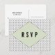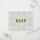 Enkel och sofistikerad chic Modern Polka dots Bröllop Response Postcard med en ljust grönt triangelformad övertäckning och en snygg svart och vit mönstrad polkapunktbakgrund. Den här klassiska och minimalistiska geometriska OSA kort är lätt att anpassa med dina bröllop-detaljer. Hitta fler anpassningsalternativ genom att klicka på Anpassa.