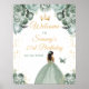 Den här eleganten och den glamorösa födelsedagsfestens välkomstskylt har en vacker prinsessa med mörk hud i en grönt boll-gryna. Texten kombinerar handskript och modernt sans serif typsnitt för ett klassligt och sofistikerat utseende. Blommigten, fjärilen och guld-konetti skapar perfekten blandning av rustika och chic. Grafik efter www.etsy.com/uk/shop/SunflowerDayLove