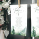Watercolor lush green pine forest and misty mountain with sage modern script, elegant and romantic, great personalized table seating cards for boho rustic wedding and mountain forest destination wedding in spring and summer.