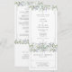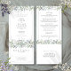 En allt-i-ett bröllopsinbjudan med akvarell sage och syren grönska bladverk och elegant typografi. Inbjudan inkluderar ett RSVP-kort som kan klippas av och gästinformationsdetaljer. Designad av Thisisnotme©