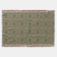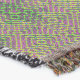 Ett komplext geometriskt mönster har ett dynamiskt färg, inklusive gröntar, lila och blåsor, som är svårt vävda till en symmetrisk repetitionsdesign. Små fyrkanter och cirklar bildar en kalejdoskopisk effekt och skapar en öga-fångstmosaik.