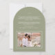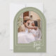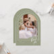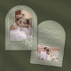 Ett bröllop-kort med elegant och ett modernt, bågformat tack som innehåller en trendig handskriven stil-text som "tackar dig" och slickar gräns runt dina foton. Anpassa mallen med initialer, bröllop-datum, meddelande och foton. Visas i en sage- och vit palett, men all text, inslag och färg i bakgrunden är redigerbara så att du kan skapa ett anpassningsbar-kort som matchar fotot perfekt. © Kimbelled, LLC