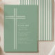 Sage Striped Cross Baptism Invitation Inbjudningar