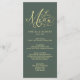 Den här elegant-menyn har en vit, blomstrande guld-typografi i sidans grönt. Du kan lägga till information på menyn Anpassa. Den här menyn är en del av en vacker matchande bröllop-svit som kan vara helt personlig.