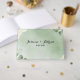 This wedding guest book cover features a soft sage green watercolor backdrop framed by torn-edge cream accents, with delicate eucalyptus sprigs and tiny blossoms along the top and bottom for a romantic, botanical feel. The spacious, light-filled center provides the perfect place for your names or a welcoming message, coordinating beautifully with your matching sage stationery to create a cohesive keepsake for guests’ well wishes.