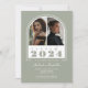 Sage and White Arch Retro "Class of 2024" Photo Studentfest Inbjudan med 2 foton. Perfekt för en kombinerad studentfest. Alla färg är anpassade med Redigera Verktyg.