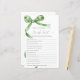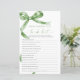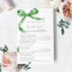 Sagegrön båge "Vem vet bruden bäst" -spel – Lägg till lite kul i din bröllopsfest med detta charmiga spelkort med en delikat sagegrön bågdesign. Detta "Vem vet bruden bäst" -spel är perfekt för att engagera gästerna och fira bruden på väg att gifta sig i stil. Med elegant script och feminina accenter är detta spelkort en vacker tillägg till alla bröllopsfesttema, vilket gör det till en minnesvärd souvenir för bruden och hennes nära och kära.