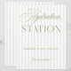 En fräsch och elegant hydrationsstationsskylt med mjuka beige ränder, i kombination med raffinerad sagegrön serif-typografi och delikat handskriven skrift. Perfekt för utomhusbröllop, trädgårdsfester och sommarfiranden. En del av den koordinerade “Iris” bröllopssamlingen — utforska matchande delar i hela sortimentet. • Mockuper för denna design skapades med Midjourney AI.