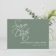 Fånga er kärlekshistoria med detta sagegröna bergsfoto spara datum-kort. Den moderna designen kombinerar minimalistisk typografi med en naturinspirerad touch - perfekt för utomhus-, rustika eller bergbröllop. Personalisera med ert foto och bröllopsinformation.