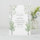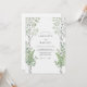 Denna design har en lugn skogsscen med smala vita björkar och ömtåliga gröna blad. Ormbunksblad förankrar botten och skapar en frodig skogsatmosfär. Paletten av sagegrönt och naturliga trätoner frammanar en lugn utomhusmiljö. Det är perfekt för par som söker en organisk, naturinspirerad estetik för deras speciella dag.