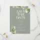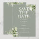 Denna eleganta sagegröna spara-datum-inbjudan med grönskande blomster typografi kan anpassas med din information i chic bokstavsstil. Designad av Thisisnotme©