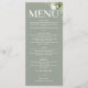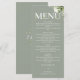 Denna eleganta salvia gröna bröllopsmeny med grönska blomster typografi kan anpassas med din information och dina monogram initialer på baksidan. Designad av Thisisnotme©