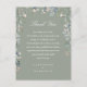 En elegant sagegrön blomsterbryllopsfirande tack mottagning kort. Personliggjort med ditt speciella tack meddelande i stilfull typografi. En speciell souvenir tack till dina gäster. Designad av Thisisnotme
