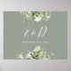 Denna eleganta sagegröna grönsakssign med blommor kan anpassas med ditt monogram och speciella datum. Designad av Thisisnotme©