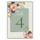 Enkel, elegant, botanisk, modern, grön vigd bordnummer med akvarell rosa blommor och grönska.