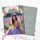 Fira din speciella dag med detta personliga Vintage Floral Bröllopsfest Tacksamhetskort. Perfekt för ett Trädgårdsbröllopsfests Tacksamhetskort eller en Rosor Bröllopsfest, denna eleganta design har vintage rosablommiga pioner och mjuka rosa och vita vintage rosor arrangerade i en romantisk båge, vackert sammanflätade med salvia gröna blad och delikat grönska. Baksidan visar en mjuk salvia grön bakgrund prydd med en enda delikat pion, vilket skapar en tidlös och graciös touch. Designad med eleganta blomster botaniska detaljer, romantisk typografi och kalligrafiskrift, är detta kort idealiskt för att tacka gäster efter din brud-till-blivande bröllopsfest, lunch eller picknick. Lägg till ditt eget foto för en verkligt personlig souvenir som fångar minnet av din speciella dag. Ett genom