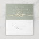 Modern sagegrön bröllopsplatskort med ett minimalistiskt guldfärgat rep-hjärta och elegant skrivstil. Perfekt för att tilldela gästernas platser vid mottagningen samtidigt som den lägger till en stilren och sammanhängande touch till din dukning. Anpassas enkelt med namn och bordnummer för din speciella dag.