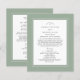 Sagegrön budgetbröllopsprogramdesign med en vacker chic kant i rustik sagegrön som inkluderar en elegant petite vit kant. Personifiera bröllopsdetaljer för dina gäster i chic kolgrå kalligrafiskrift på vit bakgrund. Baksidan av kortet matchar sagegrönt på krispigt vitt och handlar om ditt bröllopsparti! En modern mall för datum och år kompletterar den unika kalligrafidesignen. [OBS: Bröllopsdatumet visas som visas med den vertikala stapeln eller linjen som finns ovanför \ på ett tangentbord eller på din smarta enhet med specialtecken. Du kan också anpassa med valfritt annat tecken som du väljer.] För bästa resultat, se till att följa instruktionerna och avståndet i mallen när du lägger till dina egna detaljer. Kontakta mig gärna på invitationsuites@gmail.com om du har frågor om denna eller någon av våra