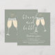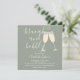 En elegant brunch och bubblig bröllopsfestinbjudan med champagneglas och signaturskriptnamn, denna stilrena inbjudan kan anpassas med din information i chic bokstavsstil på en sagegrön bakgrund. Med din registrerings QR-kod på baksidan. Designad av Thisisnotme©
