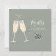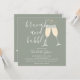 En elegant brunch och bubblig bröllopsdusch-inbjudan med champagneglas och signaturskriptnamn, denna stilrena inbjudan kan anpassas med din information i chic bokstavsstil på en sagegrön bakgrund. Med din registrerings QR-kod på baksidan. Designad av Thisisnotme©
