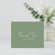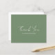 Modern sagegrön / olivgrön budget babyshow tackkort med en enkel design med "Tack" i en rustic typografi. Detta eleganta könsneutrala tackkort med en minimalistisk layout är bra oavsett om du hade en pojk- eller flickbabyshower.