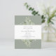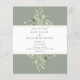 Med känsliga akvarellgröna blad på en sagegrön bakgrund. Denna eleganta botaniska bröllopsinbjudan till lågt pris kan anpassas med din speciella bröllopsinformation. Designad av Thisisnotme