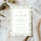 Tillägg tidlös elegans till din speciella dag med denna chinoiserie-inspirerade rädda datum-inbjudan för bröllop, med en delikat grön blomstergardin runt en elfenbensvit bakgrund.